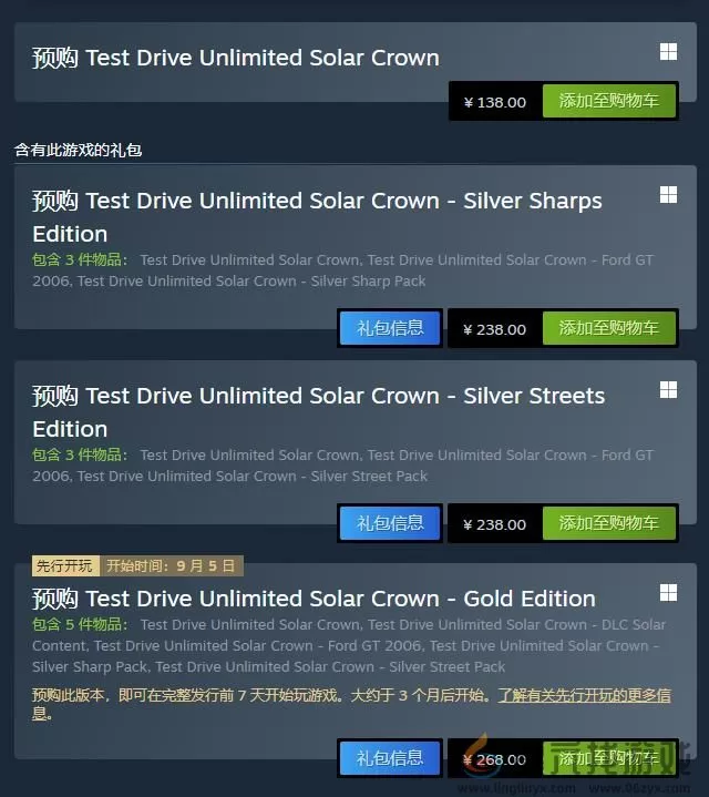 无限试驾太阳王冠这款游戏已经在Steam开启了预购,将在9月推出,这款游戏的售价不算太高,有标准版、...